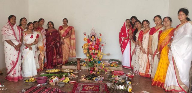 फरसगांव,29जून(वेदांत समाचार) : फरसगांव बोरगांव दुर्गा मंदिर में बंगाली समुदाय के महिलाओं द्वारा शनिवार को मां विपदतारिणी व्रत कथा का आयोजन किया गया। यह पूजा विशेष रूप से महिलाओं द्वारा परिवार की सुख-समृद्धि और सभी प्रकार के संकटों से मुक्ति पाने के लिए किया गया। इस पूजा में 13 तरह के फल, फूल और मिष्ठान्न अर्पित किए जाते हैं। इस दिन महिलाएं सुबह से निर्जला उपवास रखकर भक्ति भाव से पूजा अर्चना कर श्रद्धालु ने अपने परिवार की सुख, शांति व सुरक्षा की कामना की।