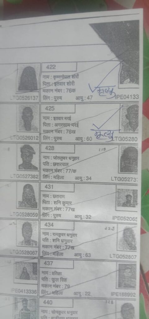 जिन दिवंगतों के नाम से फर्जी वोट डाले गए हैं, उनका नाम कृष्ण गोपाल सोरी पिता इतवार सोरी और इतवार मरई पिता अमरसाय मरई शामिल हैं। इन दोनों की मृत्यु पूर्व वर्षों में हो चुकी है लेकिन फिर भी उनके नाम से मतदान किया गया। अब देखना है कि इस शिकायत का कितना और किस हद तक निराकरण होता है..?