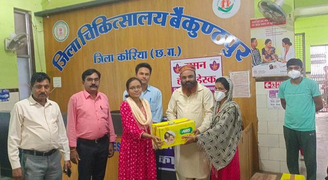 कोरिया 01 जुलाई 2025/ आज जिला चिकित्सालय बैकुंठपुर में जिला पंचायत सदस्य श्रीमती गीता राजवाड़े द्वारा बैकुंठपुर विकासखंड के 5 टीबी मरीजों को गोद लेकर, छह माह तक पोषण आहार देने की जिम्मेदारी ली गई। श्रीमती राजवाड़े ने बताया कि वे स्वयं पूर्व में टीबी की मरीज रही हैं, इसलिए मरीजों की पीड़ा को समझती हैं और सदैव सहयोग के लिए तत्पर रहेंगी। इसके साथ ही भारतीय स्टेट बैंक बैकुंठपुर द्वारा भी 5 टीबी मरीजों का पोषण आहार सुनिश्चित करते हुए ‘निक्षय मित्र‘ की भूमिका निभाई गई।