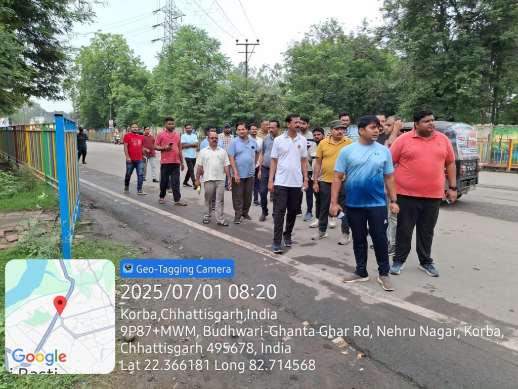 यहॉं उल्लेखनीय है कि कोरबा शहर की व्यवस्थाओं को सुधारने, सड़क फुटपाथ को अवैध कब्जों से निजात दिलाने, कोरबा को साफ-सुथरा व स्वच्छ स्वरूप देने, बाजारों व्यवसायिक व आवासीय क्षेत्रों की सफाई व्यवस्था में आमूलचूल परिवर्तन लाने की दृढ़ इच्छाशक्ति रखने वाले निगम आयुक्त श्री आशुतोष पाण्डेय प्रतिदिन सुबह-सुबह निगम की एक्शन टीम के साथ कोरबा शहर के अलग-अलग क्षेत्रों में 02 से 03 घंटे पैदल भ्रमण कर व्यवस्था सुधार का कार्य कर रहे हैं। ’’ जो भी करें-बेहतर करें ’’ की थीम व मूलमंत्र के साथ चलाए जा रहे इस अभियान की अगली कड़ी में आज आयुक्त श्री आशुतोष पाण्डेय की अगुवाई में निगम की एक्शन टीम ने महाराणा प्रताप चौक, जैन चौक, बुधवारी बाजार से व्ही.आई.पी.रोड होते हुए साकेत भवन तक पूरे लाव-लश्कर के साथ पैदल मार्च किया। आयुक्त श्री पाण्डेय ने सम्पूर्ण बुधवारी बाजार का पैदल भ्रमण करते हुए बाजार के चारों ओर 05 फिट की वाल निर्मित वाल निर्मित कर तथा वाल पर 02 फुट ऊंची ग्रील लगाकर बाजार को सुरक्षित, व्यवस्थित व सीमांकित किए जाने हेतु तत्काल प्रस्ताव तैयार करने के निर्देश अधिकारियों को दिए। उन्होने बुधवारी बाजार में पसरों का मरम्मत व सुधार कार्य करने, जीर्ण-शीर्ण व पुराने शेड का बदलने तथा बाजार के अंदर सम्पूर्ण पाथवे का मरम्मत व सुधार कार्य करने संबंधी निर्माण कार्य का प्रस्ताव तैयार कर प्रस्तुत किए जाने के निर्देश भी दिए।