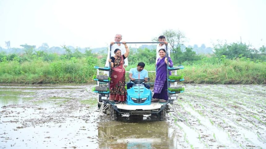तस्वीरों में भूपेश बघेल के साथ उनकी पत्नी, बेटा और बेटी भी साथ हैं. बघेल सपरिवार मशीन से धान की रोपाई करते हुए नजर आ रहे हैं. रोपाई की यह तकनीक नई है. यह परंपरागत रोपाई से बिल्कुल अलग है.