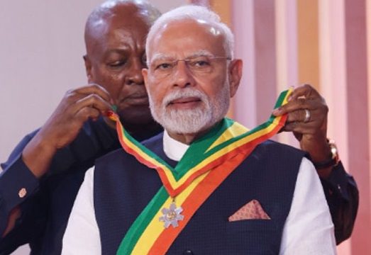 उन्होंने कहा कि उन्हें विश्वास है कि घाना की उनकी ऐतिहासिक राजकीय यात्रा दोनों देशों के संबंधों को नई गति प्रदान करेगी। श्री मोदी ने सोशल मीडिया एक्स पर एक पोस्ट में कहा, द ऑफिसर ऑफ द ऑर्डर ऑफ द स्टार ऑफ घाना’ से सम्मानित होने पर गौरवान्वित महसूस कर रहा हूं।