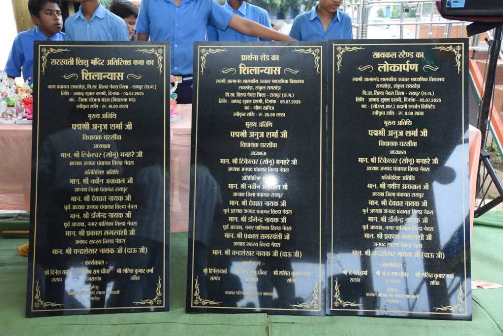 रायपुर, 05 जुलाई (वेदांत समाचार)। आज धरसीवा विधानसभा के ग्राम रायखेड़ा में भूमिपूजन व लोकार्पण कार्यकर्म में विधायक पद्मश्री अनुज शर्मा शामिल हुए।ग्राम रायखेड़ा में विभिन्न कार्यों का भूमिपूजन हुआ जिसमे मिडिल स्कूल रायखेड़ा में साईकिल स्टैंड कार्य लागत 9.00 लाख रु. व प्रार्थना शेड निर्माण कार्य लागत 20. लाख रु. का लोकार्पण व सरस्वती शिशु मंदिर में नवीन भवन निर्माण कार्य लागत 10 लाख रु. का भूमिपजन विधायक श्री शर्मा के करकमलो से संपन्न हुआ।