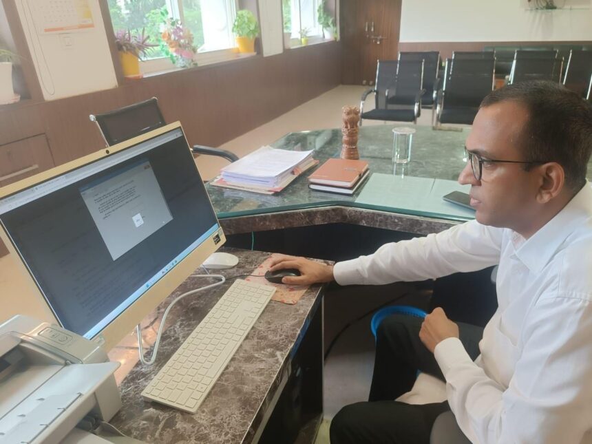0 ई-ऑफिस में जाकर कलेक्टर ने डिजिटल हस्ताक्षर कर फ़ाइल में दी स्वीकृति, ई-ऑफिस के अनुदेशों को समझने के दिये निर्देश
