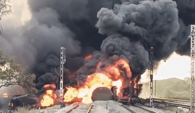 घटना के वीडियो सोशल मीडिया पर तेजी से वायरल हो रहे हैं, जिसमें टैंकरों से उठती आग की भयावह लपटें और काले धुएं का गुबार साफ नजर आ रहा है। अब तक किसी के हताहत होने की खबर नहीं है, लेकिन रेलवे प्रशासन ने मामले की जांच के आदेश दे दिए हैं और यह पता लगाने की कोशिश की जा रही है कि आग कैसे लगी। सुरक्षा एजेंसियां पूरे मामले की निगरानी कर रही हैं।