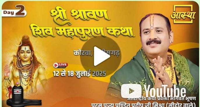 LIVE Day – 02 – श्री श्रावण शिव महापुराण कथा, पूज्य पण्डित प्रदीप जी मिश्रा, कोरबा, छत्तीसगढ़, देखिये सीधा प्रसारण यहाँ…