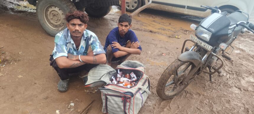 इसी क्रम में 11 जुलाई 2025 को पुलिस चौकी संबलपुर स्टाफ को जरिये मुखबीर से सूचना मिली कि संबलपुर नांदघाट पहुच मार्ग पक्की सड़क से होकर हेमंत बघेल और राजेश डेहरे नामक व्यक्ति अवैध रूप से धन अर्जित करने के लिए अपने कब्जे में शराब रखकर मोटर सायकल में परिवहन कर रहे है कि सूचना पर पुलिस चौकी संबलपुर एवं सायबर सेल टीम सूचना के अधार पर संबलपुर नांदघाट पहुच मार्ग पक्की सडक पैठु तालाब के पास संबलपुर पहुचकर हेमंत बघेल और राजेश डेहरे को घेराबंदी कर अवैध रूप से शराब रखकर परिवहन करते पकड़ा गया।