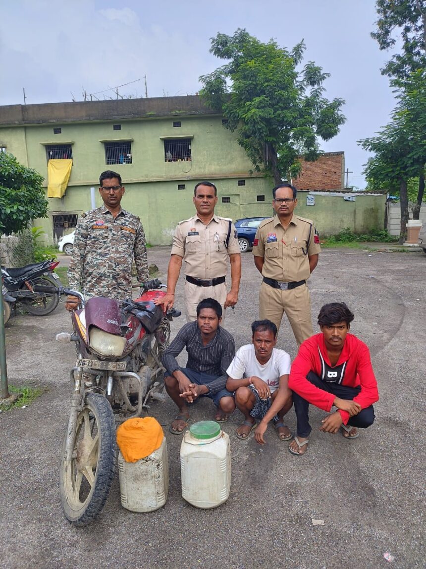 रायगढ़, 16 जुलाई 2025, (वेदांत समाचार)। आज दिनांक 16 जुलाई 2025 को रायगढ़ पुलिस अधीक्षक दिव्यांग पटेल एवं अतिरिक्त पुलिस अधीक्षक आकाश मरकाम के दिशा-निर्देश पर कोतरारोड़ थाना पुलिस द्वारा जिंदल रोड कलमी क्षेत्र में अवैध शराब के खिलाफ बड़ी कार्रवाई करते हुए तीन आरोपियों को घेराबंदी कर गिरफ्तार किया गया है।