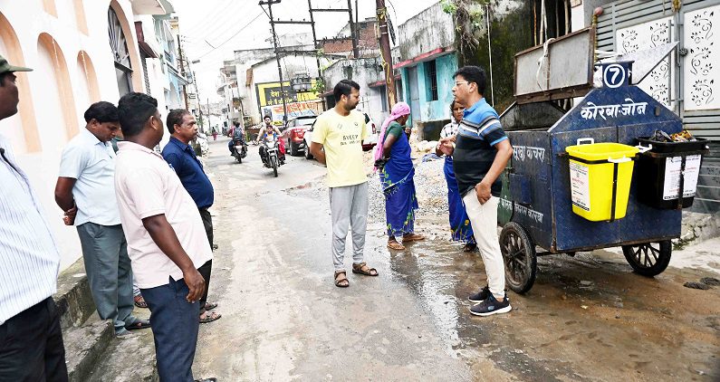 अपर आयुक्त विनय मिश्रा द्वारा अधिकारियों की टीम के साथ निकले नगर के विभिन्न गलियों में पैदल भ्रमण करते हुए, साफ-सफाई कार्यो का सघन रूप से निरीक्षण किया। वार्ड वासियों से रूबरू होकर निगम के साफ-सफाई कार्यो पर चर्चा की तथा उनकी समस्याओं की जानकारी ली। इसी कड़ी में पुरानी बस्ती, आदिले मोहल्ला, दुरपा रोड, रानी धनराजकुंवर रोड, दुर्गा मंदिर, के.एन.कालेज रोड, देवांगनपारा बस्तियों का भ्रमण करते हुए सफाई कार्यो निरीक्षण किया। वहॉं के दुकानदारों से चर्चा करते हुए उन्हें समझाईश दी कि वे अपने दुकानों प्रतिष्ठानों के बाहर डस्टबिन आवश्यक रूप से रखें व दुकानों में आने वाले ग्राहकों से वे आग्रह करें कि कचरा डस्टबिन में ही डालें। इसके अतिरिक्त उप जोन प्रभारी एवं राजस्व के अन्य कर्मचारियों को निर्देशित करते हुए कहा कि वार्ड में किसी प्रकार का अतिक्रमण अवैध कब्जा की कार्यवाही न हों, इसका विशेष ध्यान रखा जावें एवं अतिक्रमण की दशा में तत्काल कार्यवाही करने के निर्देश दिये।