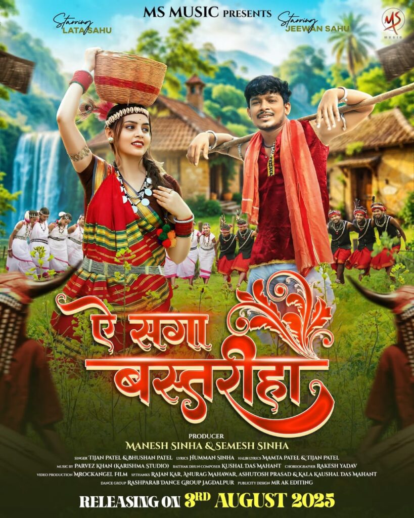 CG Cinema News : छत्तीसगढ़ की सांस्कृतिक धरोहर और बस्तर की सुरम्य वादियों में फिल्माई गई बहुप्रतीक्षित छत्तीसगढ़ी वीडियो एल्बम “ए सगा बस्तरीहा” अब 3 अगस्त 2025 को दर्शकों के बीच दस्तक देने जा रही है। इस एल्बम को MS MUSIC के बैनर तले प्रस्तुत किया गया है, जिसमें मुख्य भूमिका में नजर आएंगे छत्तीसगढ़ के लोकप्रिय कलाकार लता साहू और जीवन साहू। इस जोड़ी की मासूमियत, ग्रामीण प्रेम और भावनाओं को इतने सुंदर ढंग से प्रस्तुत किया गया है कि यह एल्बम सीधे दर्शकों के दिलों को छूने वाला है।