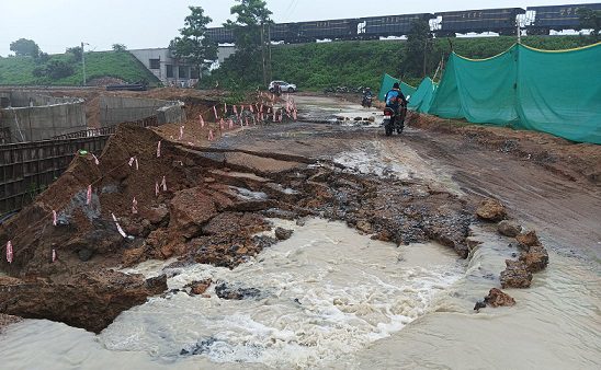 रोड़ के किनारे खुदाई के कारण गड्ढे हो गए थे, जिससे पानी के तेज बहाव ने रोड़ को धीरे-धीरे काटते हुए बहा ले गई। अब इस रास्ते पर चार पहिया व उससे बड़ी गाड़ियों का आना-जाना बंद हो गया है।