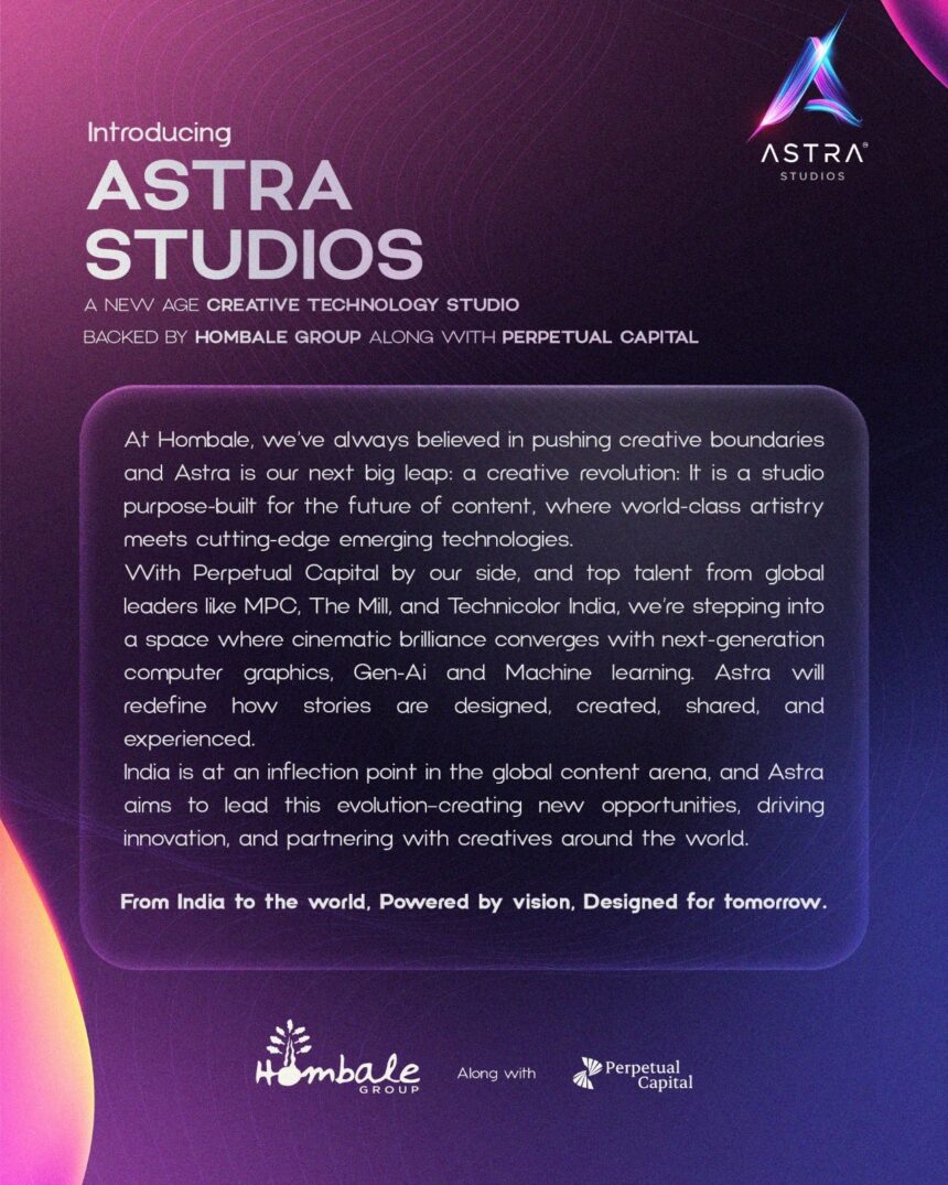 - होम्बले फिल्म्स और परपेचुअल कैपिटल ने लॉन्च किया एस्ट्रा स्टूडियोज़, AI और VFX से बदलेगा कंटेंट का भविष्य