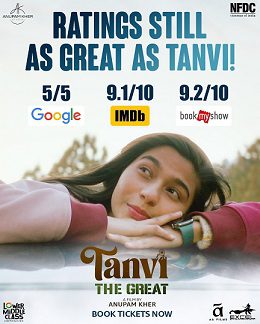 रिलीज़ के बाद से ही तन्वी द ग्रेट दर्शकों के दिलों में अपनी खास जगह बना चुकी है। फिल्म को जबरदस्त रिव्यूज़ और शानदार रेटिंग्स मिल रही हैं — IMDb पर 9.1/10, बुक माय शो पर 9.2/10 और गूगल पर परफेक्ट 5/5। यह दिखाता है कि फिल्म ने लोगों के दिल को गहराई से छुआ है। अब ये फिल्म इस हफ्ते की दुनियाभर में सबसे पसंदीदा फिल्मों और टीवी शोज़ की लिस्ट में भी शामिल हो चुकी है।