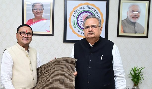 रायपुर,26जुलाई(वेदांत समाचार) । विधानसभा अध्यक्ष डॉ. रमन सिंह से मनोहर गौशाला के ट्रस्टी डॉ. अखिल जैन ने मुलाकात की। इस दौरान उन्हाेंने विधानसभा अध्यक्ष को गोबर से बनी चटाई भेंट की। विधानसभा अध्यक्ष ने गोबर शिल्प और गौशाला में चल रहे शोध की सराहना की।
