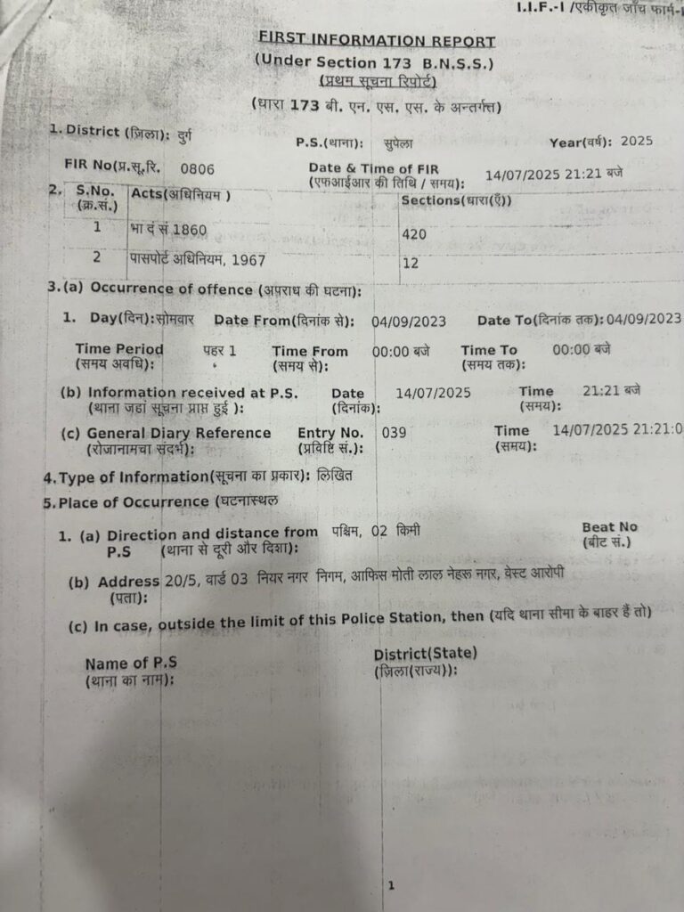 भिलाई, 26 जुलाई (वेदांत समाचार)। दुर्ग के बहुचर्चित बिल्डर, जमीन व्यापारी व फिल्म अभिनेता मनोज राजपूत के खिलाफ सुपेला थाना में केस दर्ज किया गया है. FIR में उल्लेख है कि उसने अपने आपराधिक मामले छिपाते हुए गलत तरीके से शपथ पत्र बनाया और पासपोर्ट के लिए सुपेला थाने में अनापत्ति पत्र ले लिया हालांकि पुलिस की जानकारी में जब यह मामला सामने आया तो पुलिस के पत्र पर पासपोर्ट कार्यालय से मनोज राजपूत का पासपोर्ट रद्द कर दिया गया मनोज राजपूत के खिलाफ सुपेला थाना में अपराध क्रमांक 806/2025 भा.द.सं 1860 की धारा 420, व पासपोर्ट अधिनियम 1967 की धारा 12 के तहत 14 जुलाई 2025 को अपराध दर्ज किया गया।