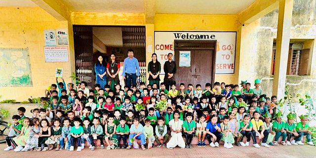 The day began with enthusiastic participation from students of LKG to Class 2, who arrived in various shades of green attire, beautifully complemented by handmade crowns crafted from fresh green leaves. This delightful visual spectacle set a cheerful tone for the day’s educational activities focused on the environment.