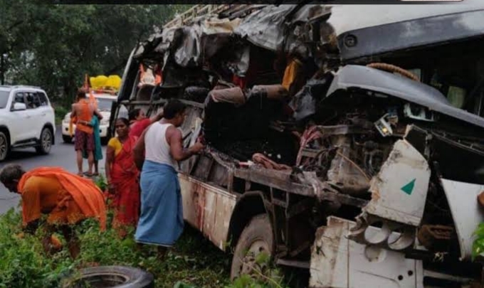 Deoghar Accident | देवघर, : देवघर जिले के मोहनपुर प्रखंड स्थित जमुनिया के पास आज मंगलवार की अहले सुबह कांवरियों से भरी बस और ट्रक के बीच भीषण टक्कर हो गयी. इस हादसे में 9 से अधिक श्रद्धालुओं की मौत की सूचना है. वहीं एक दर्जन से अधिक श्रद्धालु गंभीर रूप से घायल है. घटना की सूचना पाकर पुलिस और एनडीआरएफ की टीम मौके पर पहुंची है. सभी मृतकों और घायलों को सदर अस्पताल पहुंचाया जा रहा है.