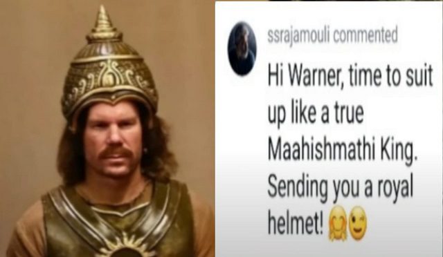 कुछ दिन पहले डेविड वॉर्नर ने सोशल मीडिया पर बाहुबली की कॉस्टयूम में अपनी कुछ तस्वीरें शेयर की थीं। अब इन तस्वीरों को रीपोस्ट करते हुए डायरेक्टर एस. एस. राजामौली ने मजेदार अंदाज़ में कमेंट किया –