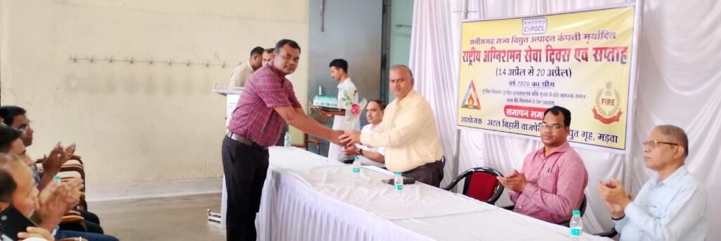 जांजगीर 21 अप्रैल 2026- विद्युत संयंत्र में कार्यरत सभी कर्मचारियों एवं श्रमिकों को अग्निशमन उपकरणों का उपयोग सीखना चाहिए। इससे अग्नि दुर्घटनाओं को रोकने में ज्यादा मदद मिलेगी। यह विचार अग्निशमन सेवा सप्ताह के पुरस्कार वितरण समारोह में मुख्य अभियंता एचएन. कोसरिया ने व्यक्त किए। अटल बिहारी वाजपेयी ताप विद्युत संयंत्र (एबीवीटीपीएस) मड़वा में 14 से 20 अप्रैल 2026 को अग्निशमन सेवा सप्ताह मनाया गया।