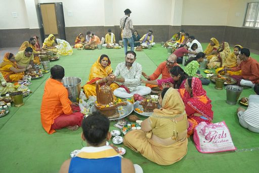 इसमें पांच पंडितों के द्वारा कलश स्थापना, गौरीगणेश, नव ग्रह षोडशमांत्रिका, ग्राम देवता, स्थान देवता, पार्थिव भगवान शिव को मंत्रोपचार से अभिमंत्रित कर तत्पश्चात सर्व समाज के कल्याणार्थ भगवान भोलेनाथ का रुद्राभिषेक, पूजन अर्चना, एवं मंगल आरती पांच पंडितों के द्वारा विधि विधान से संपन्न किया गया।