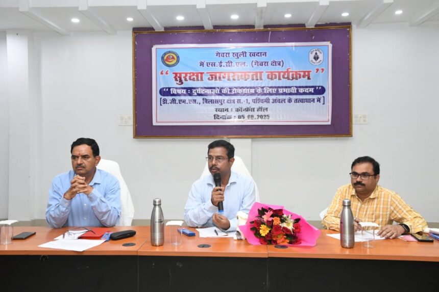 कोरबा,06 अगस्त 2025। डीएमएस खनन बिलासपुर रीजन-01, पश्चिम अंचल जोन नागपुर के तत्वाधान में गेवरा हाउस के गेवरा क्षेत्र के सभागार में सुरक्षा जागरूकता कार्यक्रम आयोजित किया गया। इस कार्यक्रम का मुख्य उद्देश्य दुर्घटनाओं को रोकने के लिए प्रभावी कदम उठाना था।