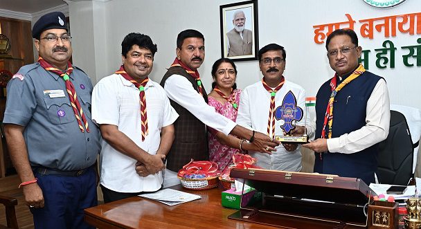 रायपुर 06 अगस्त 2025(वेदांत समाचार)/ मुख्यमंत्री विष्णुदेव साय से उनके निवास कार्यालय में भारत स्काउट्स एवं गाइड्स छत्तीसगढ़ के प्रतिनिधिमंडल ने सौजन्य मुलाकात की। प्रतिनिधिमंडल ने मुख्यमंत्री श्री साय को भारत स्काउट्स एवं गाइड्स छत्तीसगढ़ द्वारा प्रदेश भर में चलाए गए ‘एक राखी सैनिक भाइयों के नाम’ अभियान की जानकारी दी।