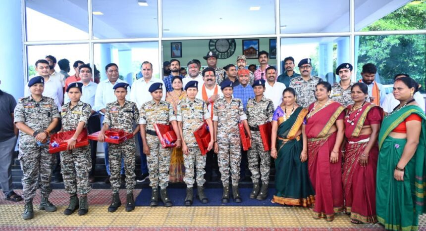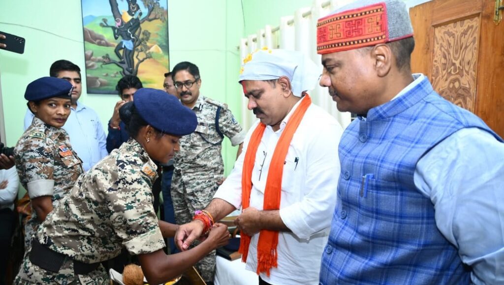 रायपुर, 09 अगस्त 2025/रक्षाबंधन के पावन अवसर पर उपमुख्यमंत्री विजय शर्मा ने दंतेवाड़ा में एक भावनात्मक और ऐतिहासिक आयोजन में भाग लिया। ‘दंतेश्वरी फाइटर’ महिला कमांडो तथा आत्मसमर्पित महिला नक्सलियों ने उपमुख्यमंत्री को राखी बांधकर भाईचारे, विश्वास और शांति का सशक्त संदेश दिया।