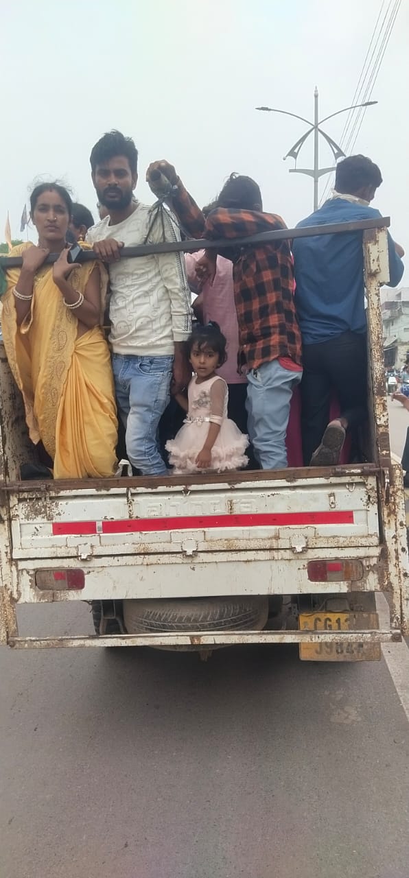 वहीं जूटमिल क्षेत्र अंतर्गत दो मालवाहक पिकअप में बड़ी संख्या में महिलाएं, बच्चे और पुरुषों को खतरनाक तरीके से बैठाकर ले जाया जा रहा है।