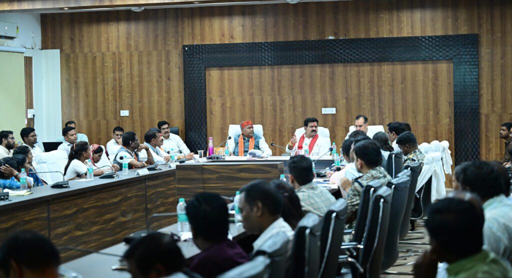 रायपुर, 10 अगस्त 2025 I नारायणपुर जिले में नक्सल उन्मूलन और विकास कार्यों की प्रगति को लेकर आज जिला पंचायत सभाकक्ष में एक अहम बैठक हुई, जिसमें प्रदेश के गृह एवं जेल, पंचायत एवं ग्रामीण विकास, तकनीकी शिक्षा एवं रोजगार विज्ञान और प्रौद्योगिकी मंत्री एवं उपमुख्यमंत्री विजय शर्मा ने नेतृत्व किया। बैठक में जिले के विभिन्न वर्गों समाज प्रमुखों, व्यापारी संगठनों, चेंबर ऑफ कॉमर्स, ठेकेदारों, सोशल मीडिया इंफ्लुएंसर्स, जनप्रतिनिधियों और बैंक अधिकारियोंने एक साथ बैठकर नक्सलवाद के उन्मूलन और सर्वांगीण विकास पर विचार-विमर्श किया।