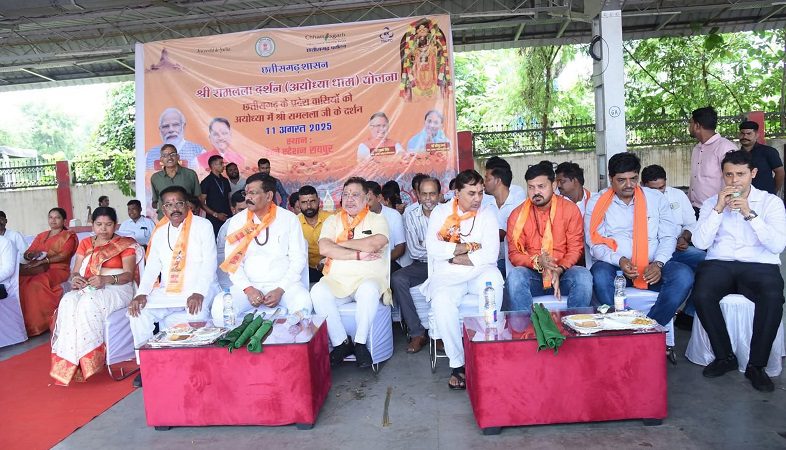 रायपुर, 11 अगस्त (वेदांत समाचार)। राजधानी रायपुर में छत्तीसगढ़ सरकार द्वारा प्रदेशवासियों की आस्था और श्रद्धा को मूर्त रूप देने हेतु प्रारंभ की गई ‘रामलला दर्शन योजना’ के अंतर्गत आज रायपुर रेलवे स्टेशन से रायपुर संभाग के श्रद्धालु विशेष ट्रेन से अयोध्या धाम के दर्शन के लिए रवाना हुए।