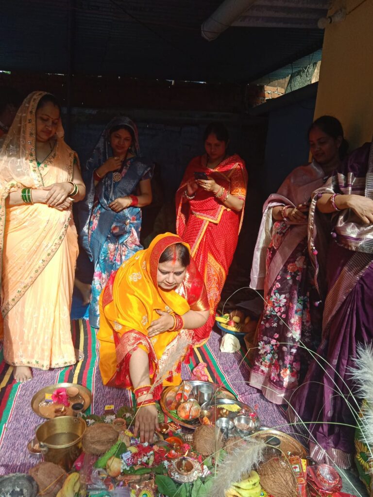 सभी महिलाएं सुबह से निराहार उपवास रहकर हल षष्ठी माता की पूजा अपने संतान की लंबी उम्र की कामना करते हुए नियम धरम से मिट्टी का तालाब बनाकर किए।