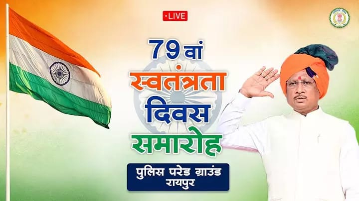 रायपुर,15 अगस्त 2025। राजधानी रायपुर से लेकर जिला मुख्यालयों, कस्बो एवं गांवों में 79वें स्वतंत्रता दिवस के गरिमामय आयोजन को लेकर सभी तैयारियां पूरी कर ली गई है। स्वतंत्रता दिवस का राज्य स्तरीय मुख्य समारोह रायपुर के पुलिस परेड ग्राउंड में प्रातः 9 बजे से आयोजित होगा, जहां मुख्यमंत्री विष्णु देव साय राष्ट्रीय ध्वज फहराएंगे। मुख्यमंत्री परेड के आकर्षक मार्चपास्ट की सलामी लेने के पश्चात राज्य की जनता के नाम अपना संदेश देंगे।