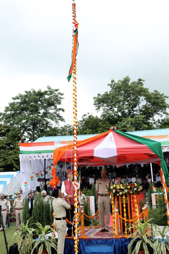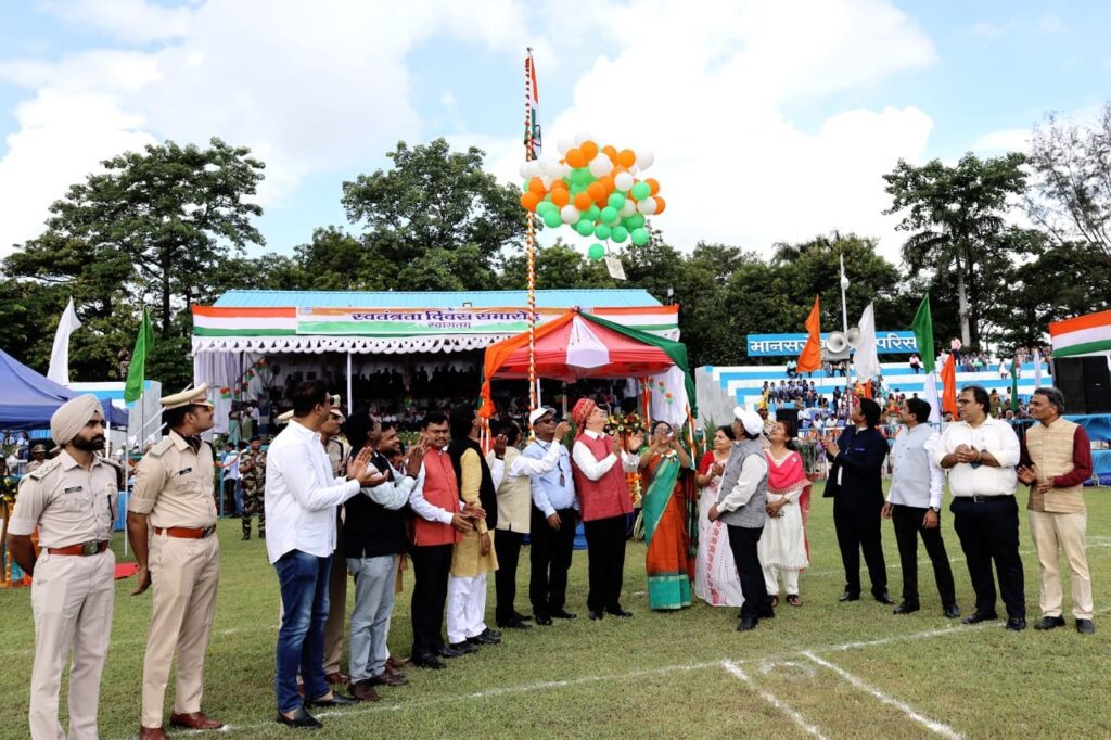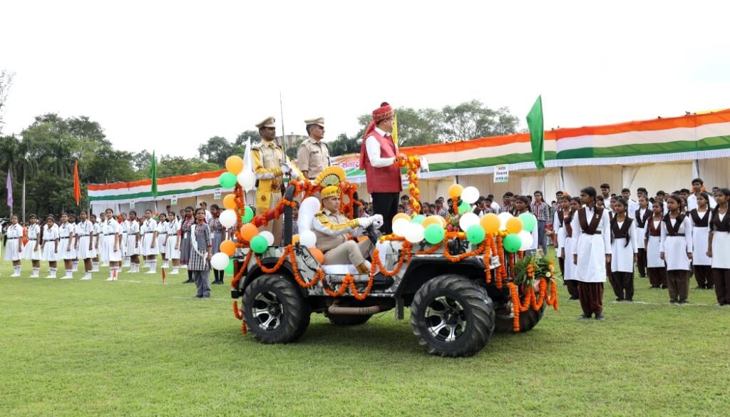 The cultural segment featured patriotic dances and songs performed by students of Delhi Public School, Kendriya Vidyalaya No. 02, Saraswati Shishu Mandir, Government High Schools, Bal Bhawan, and Tiny Cottage. A spectacular tricolour pressure jet spray demonstration by the CISF captivated the audience, adding grandeur to the festivities.