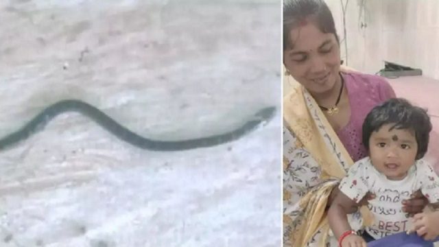 कुछ ही मिनटों में सांप तड़पकर मर गया। मां ने जब यह दृश्य देखा तो घबरा गईं और तुरंत परिजनों को सूचना दी।