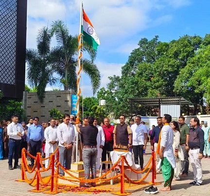 कोरबा,16अगस्त (वेदांत समाचार)। 79वें स्वतंत्रता दिवस के अवसर पर न्यू कोरबा ग्रुप ऑफ हॉस्पिटल्स (एनकेएच) में ध्वजारोहण एवं देशभक्ति से ओतप्रोत कार्यक्रम का आयोजन किया गया। प्रातः 9 बजे ग्रुप डायरेक्टर डॉ. एस. चंदानी एवं वरिष्ठ चिकित्सक डॉ. शंकर पालीवाल ने तिरंगा फहराया। राष्ट्रगान के बाद सुरक्षा गार्ड ने सलामी दी और शहीदों को श्रद्धांजलि अर्पित की गई।