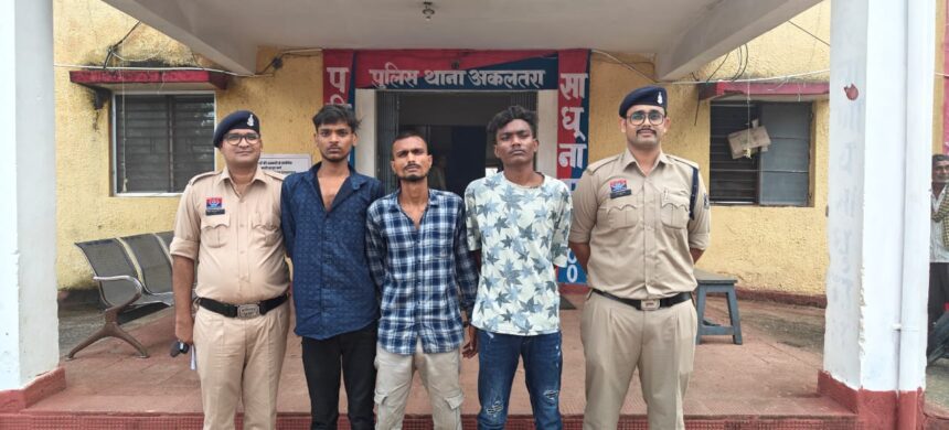 गिरफ्तार आरोपियों की पहचान प्रभात यादव ऊर्फ भोलू उम्र 22 वर्ष निवासी वार्ड नं0 11 अकलतरा, गब्बर ऊर्फ सुमीत चौहान उम्र 19 वर्ष निवासी दर्रीपारा खिसोरा थाना अकलतरा और संजीव कुमार ऊर्फ चीकू उम्र 19 वर्ष निवासी घासीदास मोहल्ला अकलतरा के रूप में हुई है।