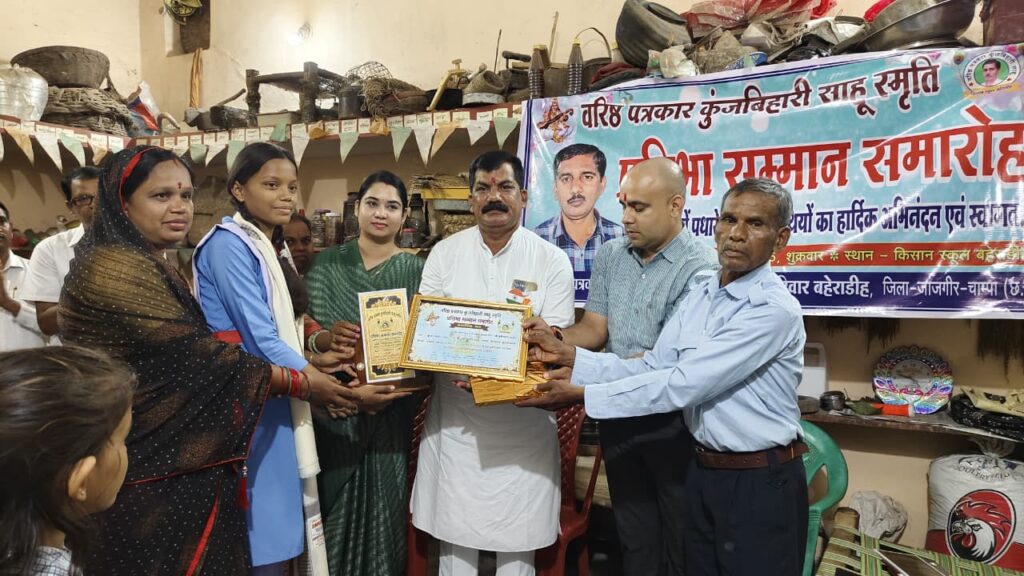 जांजगीर-चाम्पा, 18 अगस्त (वेदांत समाचार). बहेराडीह में स्थापित देश के पहले किसान स्कूल में स्वतंत्रता दिवस के अवसर पर वरिष्ठ पत्रकार कुंजबिहारी साहू की स्मृति में प्रतिभा सम्मान समारोह का आयोजन तृतीय वर्ष किया गया, जिसमें बहेराडीह गांव में पांचवी, आठवीं, दसवीं और बारहवीं कक्षा में पहला, दूसरा और तीसरा स्थान प्राप्त करने वाले 12 बच्चों को प्रतिभा सम्मान से सम्मानित किया गया.