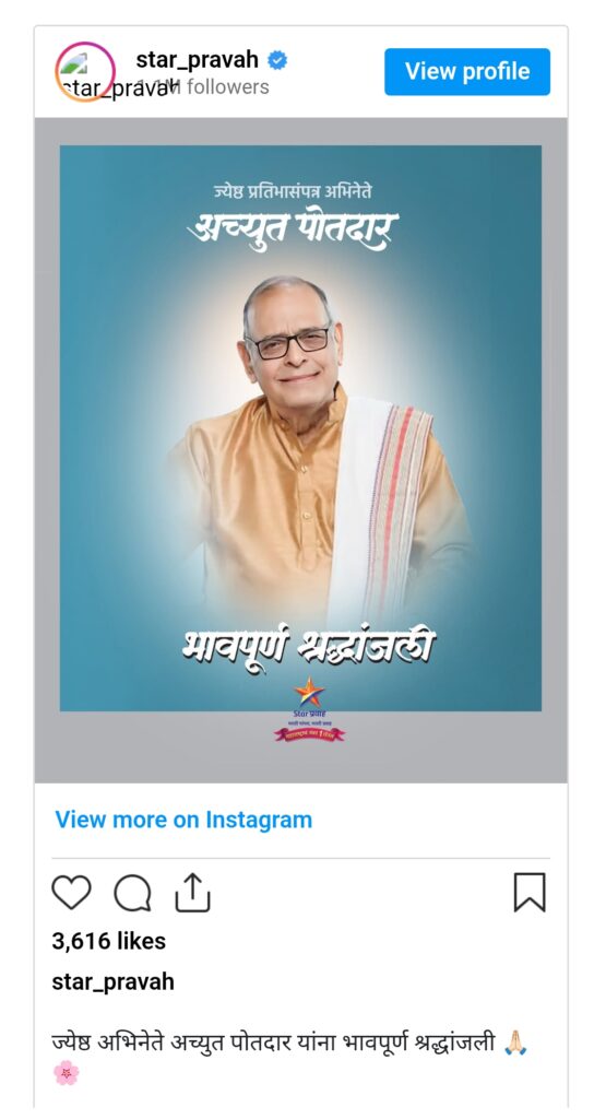 सोशल मीडिया पर कई मराठी टीवी चैनल्स ने एक्टर की पोस्ट शेयर कर उन्हें श्रद्धांजलि देते हुए इस दुखद खबर का ऐलान किया है। इसके बाद से ही एक्टर के फैंस भी उन्हें कमेंट सेक्शन में श्रद्धांजलि दे रहे हैं। इस दुखद खबर से हिंदी के साथ-साथ मराठी सिनेमा इंडस्ट्री में भी शोक की लहर दौड़ रही है।