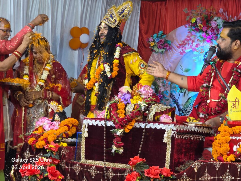 कथा के दौरान रुक्मणी-कृष्ण विवाह प्रसंग का भावपूर्ण और जीवंत वर्णन किया गया। इसी क्रम में कथा स्थल पर ही भव्य झांकी निकाली गई और बारात का आयोजन किया गया। दूल्हा बने द्वारिकाधीश के साथ बाराती नाचते-गाते कथा प्रांगण पहुंचे, जहां उनका भव्य स्वागत किया गया। इसके बाद विधिवत रुक्मणी-कृष्ण विवाह संपन्न कराया गया और हल्दी, टिकावन सहित अन्य वैवाहिक रस्में भी निभाई गईं।