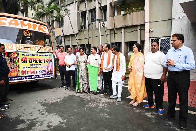 यह दल बस के माध्यम से बिलासपुर के उस्लापुर रेलवे स्टेशन पहुंचा, वहॉं से विशेष ट्रेन द्वारा अयोध्याधाम पहुंच कर श्री रामलला जी के दर्शन का पुण्य लाभ प्राप्त करेंगे। नगर पालिक निगम कोरबा के मुख्य प्रशासनिक भवन साकेत में आज प्रातः 08 बजे निगम की महापौर श्रीमती संजूदेवी राजपूत, नरेन्द्र देवांगन, एम.आई.सी.सदस्य हितानंद अग्रवाल, अजय गोंड़, धनकुमारी रामकुमार साहू, चेतन सिंह मैत्री व अन्य जनप्रतिनिधियों ने हरी झण्डी दिखा कर तीर्थ यात्रियों की बस को रवाना किया, उन्होने तीर्थ यात्रियों का पुष्पाहार से स्वागत किया एवं उन्हें अपनी हार्दिक बधाई व शुभकामनायें दी। इस अवसर पर तीर्थ यात्रियों ने श्री रामलला दर्शन योजना की मुक्तकंठ से प्रशंसा करते हुए सरकार के प्रति अपना आभार व्यक्त किया।