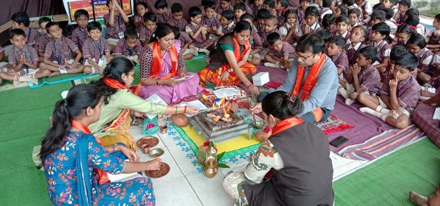Korba, August 24: The Ved Prachar Saptah (Vedic Promotion Week) organized by the DAV Management Committee at DAV Mukhya Mantri Public School concluded on a grand note with a hawan ceremony today. The week-long event, which commenced on August 19, witnessed enthusiastic participation from both teachers and students.