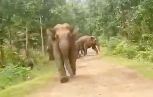 जहां मंगलवार की शाम को जंगल के रास्ते से दो युवक बाइक से गुजर रहे थे। तभी उन्होंने नवापारा से भेंगारी मार्ग की तरफ बढ़ रहे हाथियों के दल को देखा और उसका वीडियो बनाना शुरू कर दिया। हाथी दल आगे बढ़ रहा था और युवक उनका वीडियो बना रहे थे।