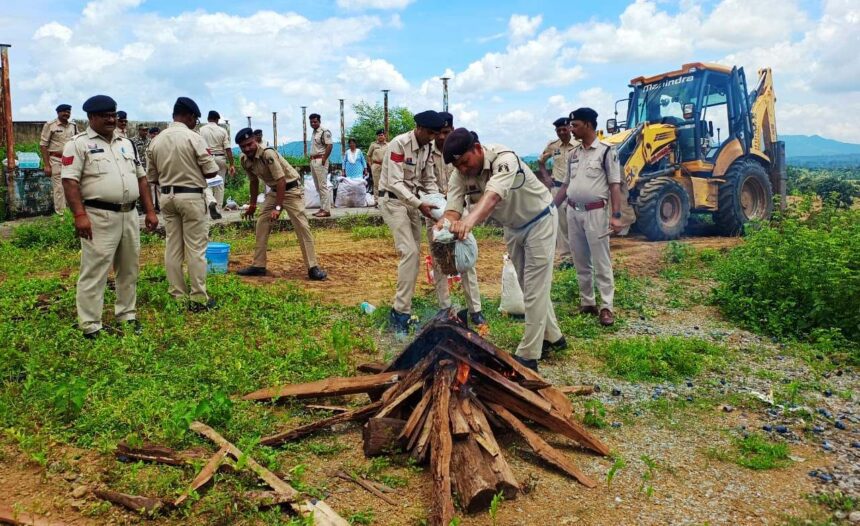 एमसीबी/28 अगस्त 2025/ जिले में नशे के कारोबार पर कड़ी कार्रवाई करते हुए पुलिस प्रशासन ने एक बड़ी उपलब्धि हासिल की है। पुलिस महानिरीक्षक सरगुजा रेंज सरगुजा के स्पष्ट निर्देशों के तहत आज जिले के थाना जनकपुर, चिरमिरी, खड़गवां, पोंड़ी एवं मनेन्द्रगढ़ में वर्ष 2022, 2023, 2024 एवं 2025 तक नारकोटिक्स एक्ट के तहत जप्त किए गए मादक पदार्थों का सार्वजनिक रूप से नष्टीकरण किया गया। इस कार्रवाई के दौरान 129.95 किलोग्राम गांजा जिसकी बाजार कीमत लगभग 12 लाख 33 हजार 900 रुपये आंकी गई, इसके अलावा 272 नग नशीली इंजेक्शन एवं 122 नग नशीली टेबलेट जिनकी कीमत 7381 रुपये रही, जिसको विधिवत नष्ट किया गया।