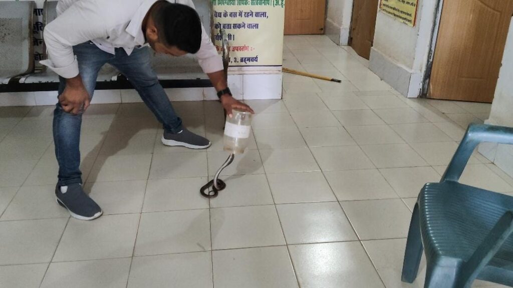 औषधालय के चिकित्सा अधिकारी डॉ. नेहा घृतलहरें ने बताया कि घटना की जानकारी मिलते ही उन्होंने तुरंत वाइल्डलाइफ रेस्क्यू टीम को सूचित किया। टीम के प्रमुख जितेंद्र सारथी ने बताया कि उन्हें घटना की जानकारी मिलते ही वे औषधालय पहुंचे और सावधानी पूर्वक कोबरा का रेस्क्यू किया।