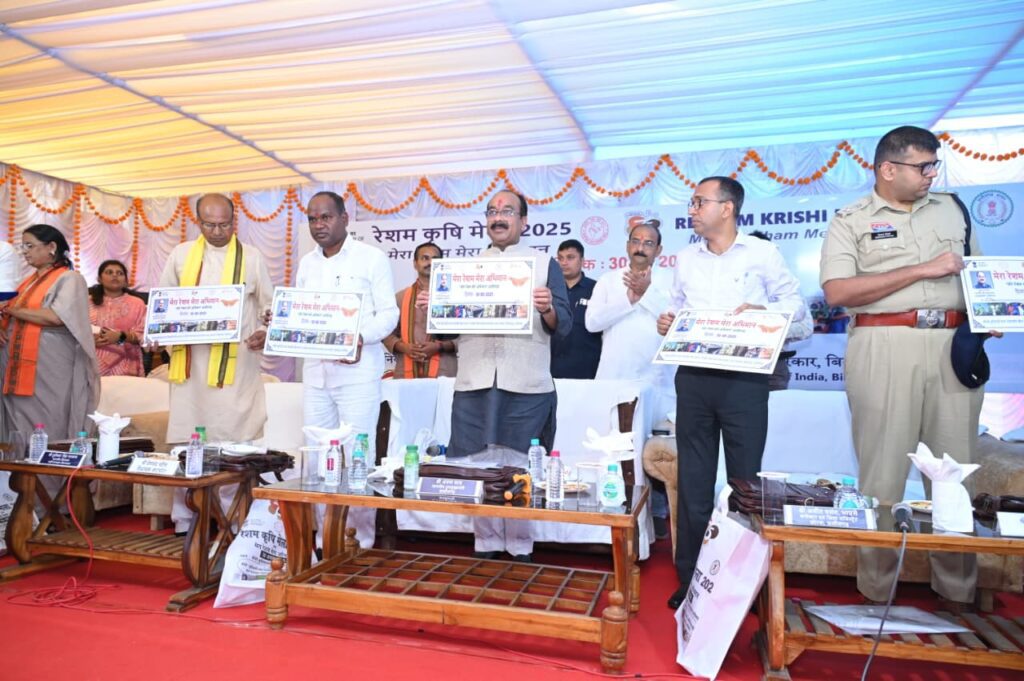 इस अभियान से किसानों को प्रशिक्षण की सुविधा मिलने के साथ ही रेशम उत्पादन को बढ़ावा मिलेगा। उन्होंने महिलाओं को महतारी वन्दन योजना से प्रतिमाह एक हजार रुपये दिए जाने की बात कहते हुए बताया कि महिलाओं को आर्थिक रुप से सक्षम बनाने के दिशा में कार्य किए जा रहे हैं। उन्होंने रेशम उत्पादन में आने वाली बाधाओं को दूर करने की बात कही। इसके लिए रेशम विभाग से जुड़े अधिकारियों को कार्यालय आकर समस्याओं को चिन्हित कराने कहा है। उपमुख्यमंत्री श्री साव सहित अन्य अतिथियों ने मेरा रेशम,मेरा अभिमान के पोस्टर का विमोचन भी किया। इस दौरान उन्होंने रेशम कृषि मेले में आयोजित स्टॉल का अवलोकन किया। उन्होंने आधुनिक स्तर पर उत्पादन में सहयोगी गतिविधियों को देखने के साथ ही किसानों से चर्चा भी की।