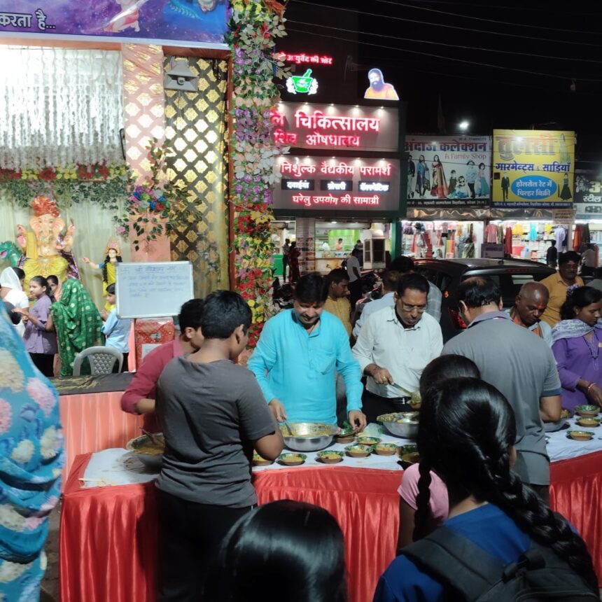 कोरबा, 01 सितंबर (वेदांत समाचार)। गणेश चतुर्थी के पावन पर्व पर भगवान गणेश जी की प्रतिमा को गाजे बाजे के साथ व्यवसायियों द्वारा निहारिका महानदी काम्प्लेक्स परिसर में विराजित कीया गया है। जिसमें प्रतिदिन भोग भंडारे का आयोजन कीया जा रहा है। जिसमें हजारों भक्तगण प्रतिदिन प्रसाद ग्रहण कर रहे हैं।