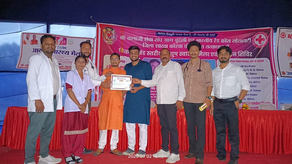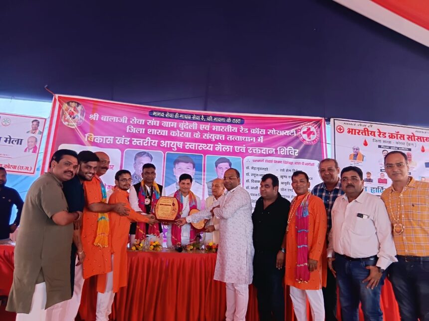 कोरबा। छत्तीसगढ़ शासन के आयुष विभाग के दिशा-निर्देश और जिला प्रशासन के सहयोग से श्री बालाजी सेवा संघ एवं भारतीय रेड क्रॉस सोसायटी के संयुक्त तत्वावधान में ग्राम बुंदेली में विकासखंड स्तरीय आयुष स्वास्थ्य मेला और रक्तदान शिविर का भव्य आयोजन किया गया।