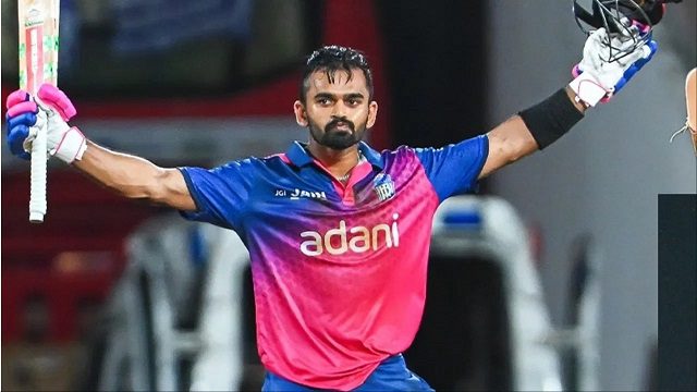 केरल क्रिकेट लीग 2025 में 2 सितंबर को अडाणी त्रिवेंद्रम रॉयल्स का मुकाबला थ्रिसुर टाइटंस से था. इस मुकाबले में रॉयल्स ने पहले बल्लेबाजी की थी, जिसके लिए उसके ओपनर कृष्णा प्रसाद ने धुआंधार शुरुआत की. बड़ी बात ये है कि कृष्णा प्रसाद अपनी टीम के कप्तान भी थे और जब टीम का कप्तान बल्ले के जोर पर फ्रंट से लीड करता है, बाउंड्रीज की बौछार कर शतक जड़ता है, तो फिर उससे टीम के मनोबल का अंदाजा लगाया जा सकता है.