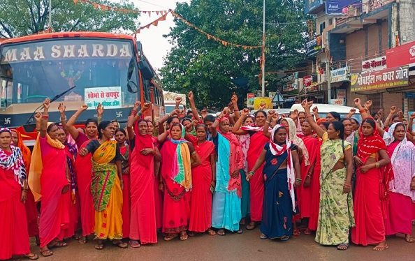 गरियाबंद,04 सितम्बर (वेदांत समाचार) : राजधानी रायपुर में आयोजित मितानिनों के प्रदेश व्यापी हड़ताल में शामिल होने जा रही जिले की मितानिन बहनों को प्रशासन ने जिला मुख्यालय में ही रोक दिया। इससे आक्रोशित मितानिनों ने गुरुवार को नेशनल हाईवे 130 पर तिरंगा चौक के पास चक्काजाम कर दिया। मितानिनों का कहना है कि वे अपनी मांगों को लेकर रायपुर जाने से रोकी जा रही हैं, जो उनके आंदोलन को कमजोर करने की कोशिश है।