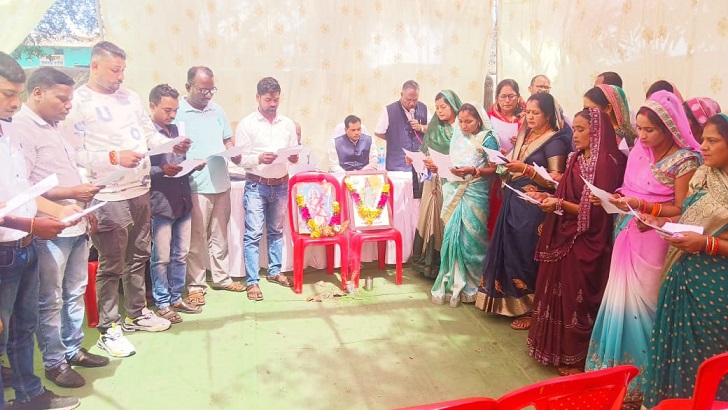 विनोद उपाध्याय,कोरबा,03 मार्च (वेदांत समाचार)। हरदी बाजार पाली विकासखंड अंतर्गत ग्राम पंचायत हरदी बाजार में सरपंच एवं 20 पंचों का शपथ ग्रहण समारोह संपन्न हुआ सर्वप्रथम ग्राम पंचायत के नवनिर्वाचित सरपंच लोकेश्वर कंवर के द्वारा मां सरस्वती की पूजा अर्चना कर सभी पांचों एवं गांव के जनप्रतिनिधि गणमान्य नागरिकों के द्वारा भी पूजा अर्चना कर श्रीफल तोड़ा गया एवं अतिथियों के द्वारा नवनिर्वाचित सरपंच लोकेश्वर कंवर सहित नवनिर्वाचित पंच श्रीमती सावित्री कंवर, प्रियंका जायसवाल, बॉबी राठौर, नेहा सतनामी, चंद्रकला कंवर, नयन कुमारी ओड, श्याम कुमार रात्रे, मनमोहन खांडे ,शैल कुमारी राठौर, ममता ओग्रे,चैन सिंह अगरिया, इंदिरा बाई, चंद्रकली ओडे, नंदनी राठौर, राजेंद्र कुमार जगत ,श्याम बाई मरकाम, भानु प्रताप सिंह कंवर, इंद्र भूषण सिंह, रेखा जायसवाल, हिमांशु जायसवाल बीस पंचों को प्रमाण पत्र दिया गया तत्पश्चात ग्राम पंचायत भवन प्रांगण में सरपंच पंचों के साथ मिलकर शपथ लिया गया कार्यक्रम में मुख्य रूप से उपस्थित मदन मोहन (बेचू) कंवर, बद्री प्रसाद राठौर ,मदन राठौर, रघुनाथ राठौर, नरेश टंडन, चूलेश्वर राठौर, विजय जायसवाल,भुनेश्वर राठौर, जगदीश अग्रवाल, राजाराम राठौर, निलेंद्र राठौर, विनोद उपाध्याय,आशीष जायसवाल, सहित ग्रामीण जन उपस्थित रहे इस दौरान ग्राम सचिव बिसाहू सिंह राज, समारू कैवर्त, कृष्णा पटेल एवं जनप्रतिनिधियों के द्वारा कार्यक्रम को सफल बनाया ।